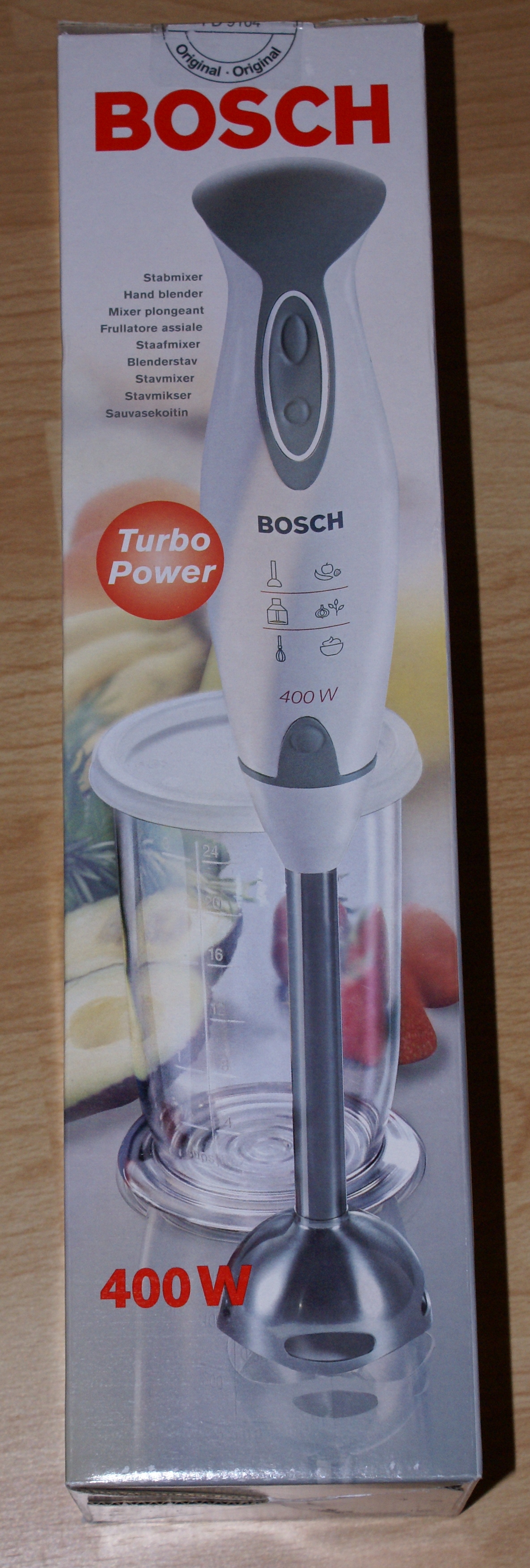 Drei Minuten später klingelte es wieder, ich betätigte erneut den Türöffner und wartete auf die Dinge, die da nun passieren würden. Der Paketbote kam ein zweites Mal die Treppe hinauf gesprintet. Diesmal war das Paket für mich. Der Inhalt: ein Püriertstab. :) Und zwar genau dieser hier: