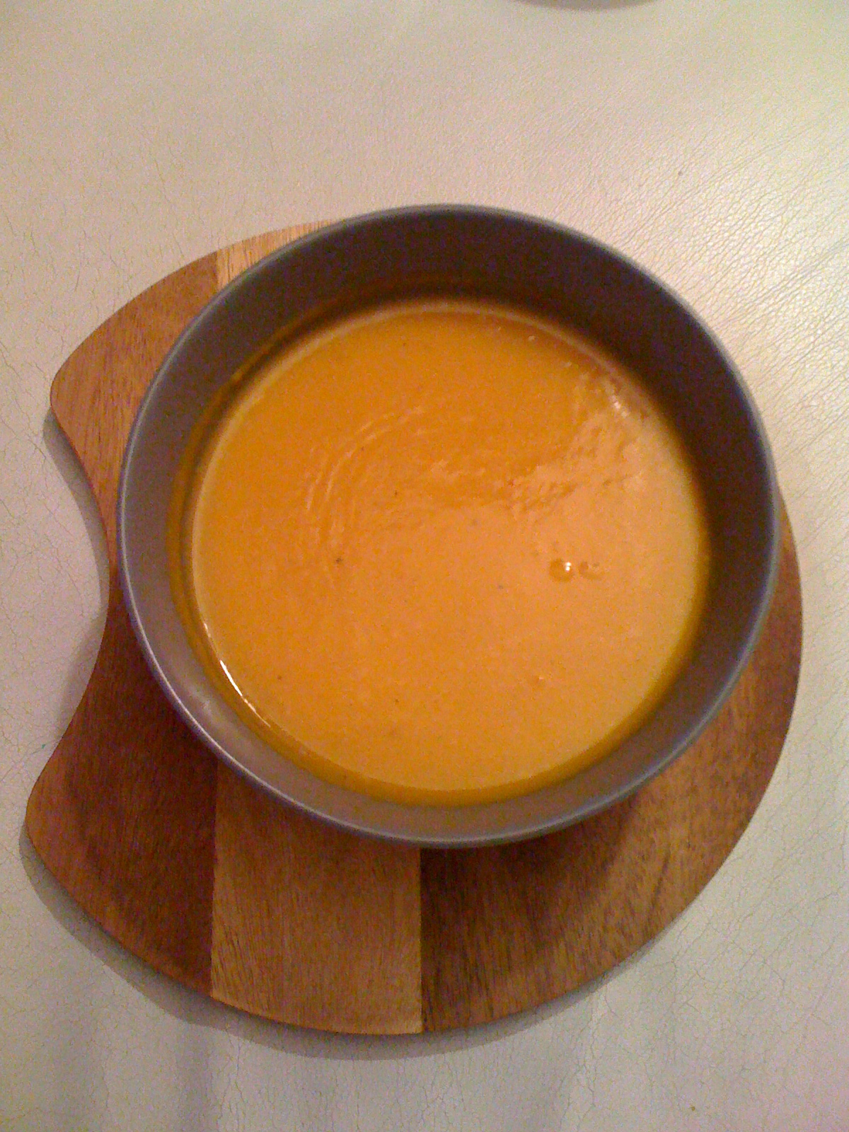 Nachdem ich seit Mittwoch stolze Besitzerin eines Pürierstabes bin, habe ich gestern sofort eine Kürbissuppe damit zubereitet. Dazu benötigte ich folgende Zutaten: