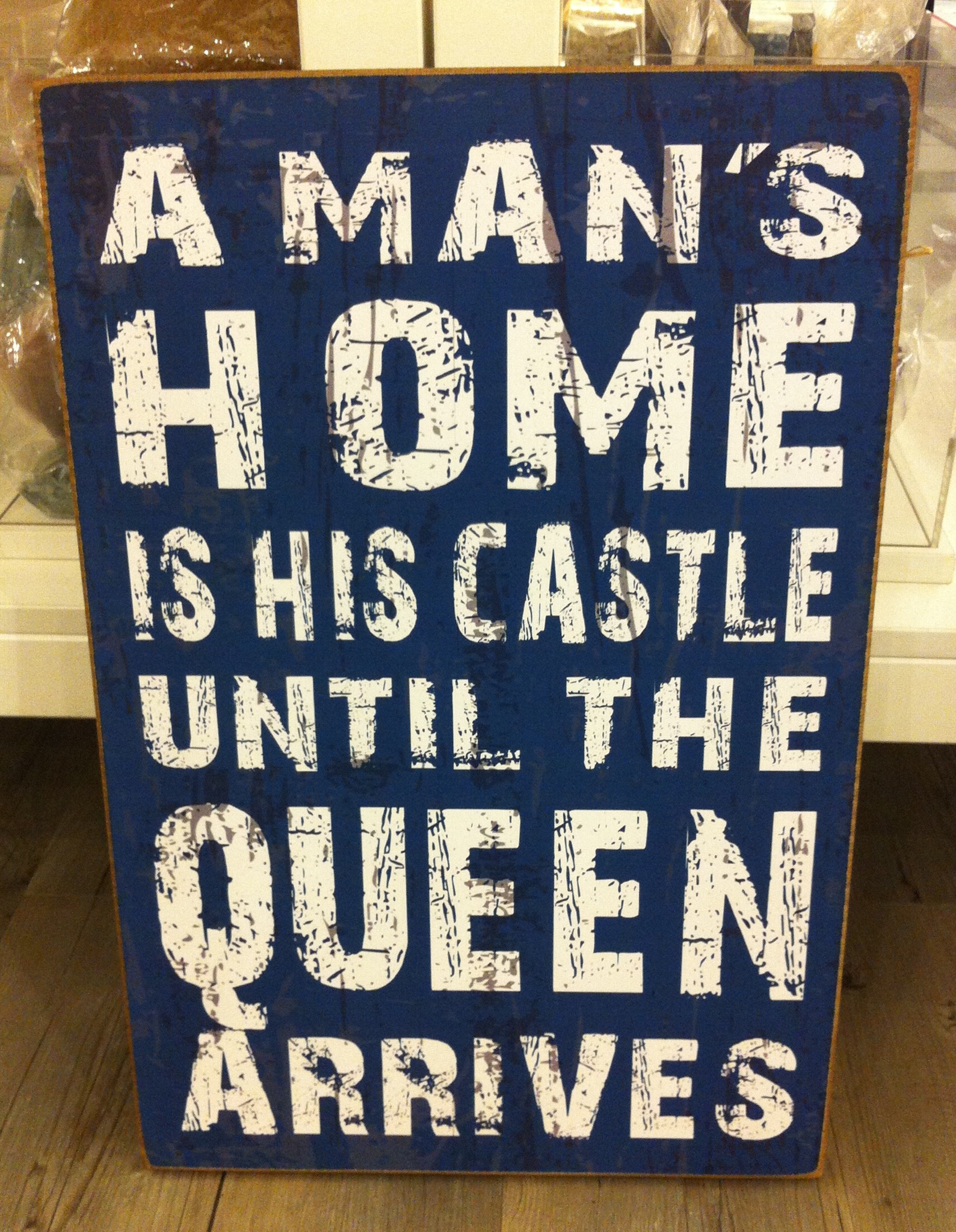 Für blinde Besucher meines Blogs – Text der auf dem Schild zu lesen ist: A man’s home is his castle until the queen arrives.