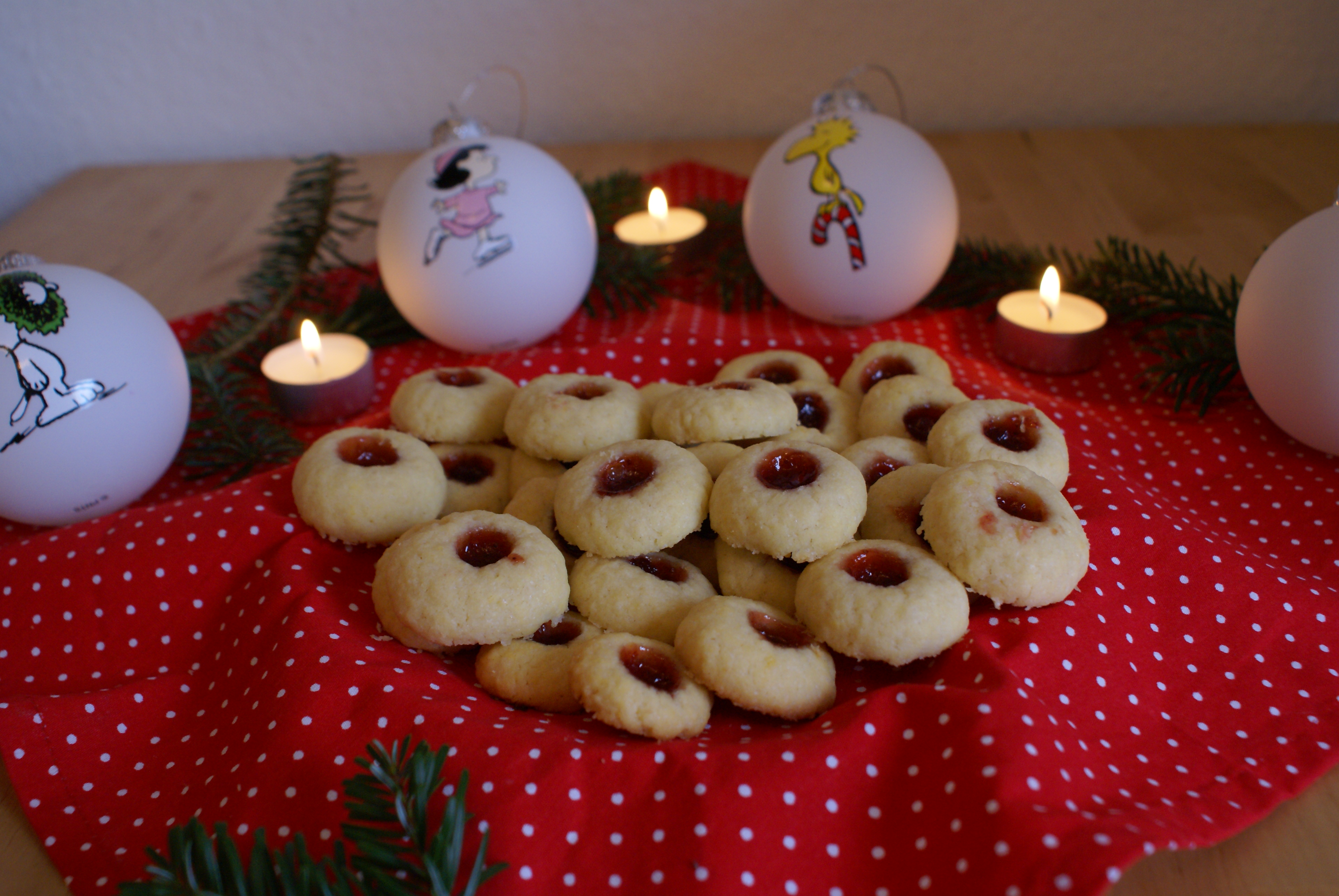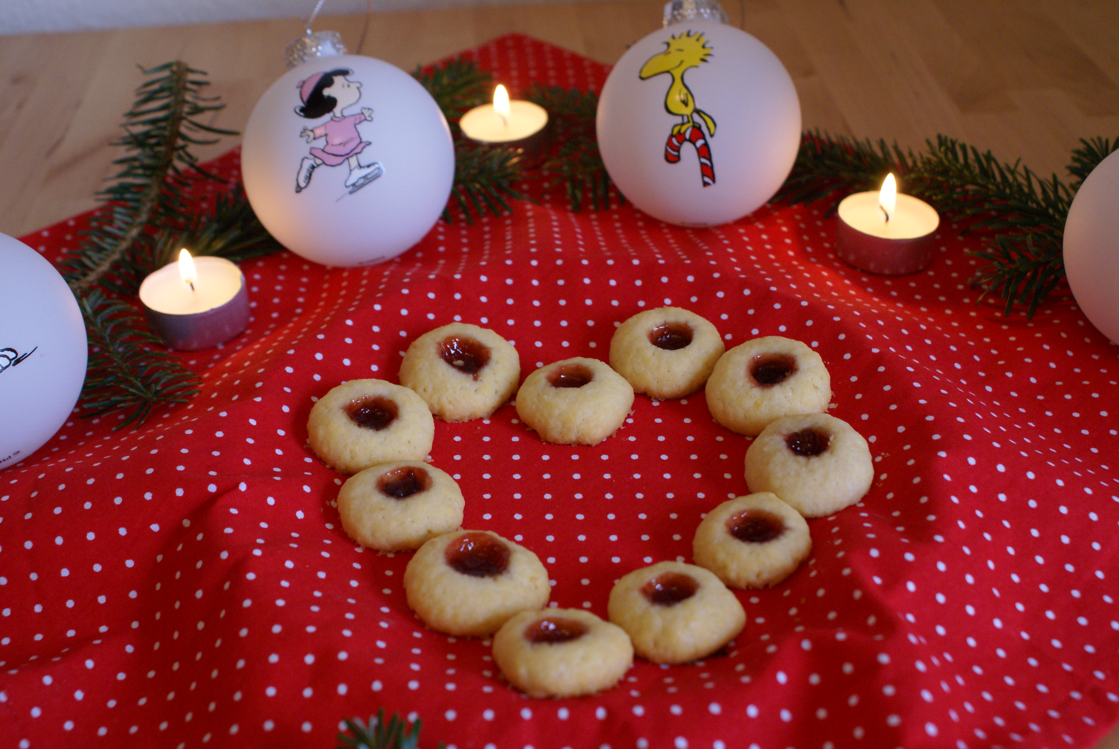 Außer der Mandelmakronen habe ich gestern übrigens auch noch mal Liebesgrübchen gebacken. Und ich weiß nicht woran es liegt, aber bei meiner Mama schauen die Liebesgrübchen immer total gut aus, während meine immer misslungen aussehen. Ich glaube sie streut Zauberpulver über ihre Plätzchen. ;)